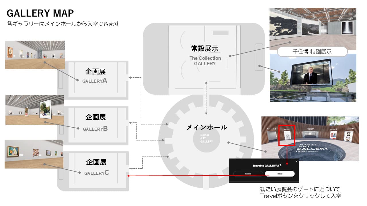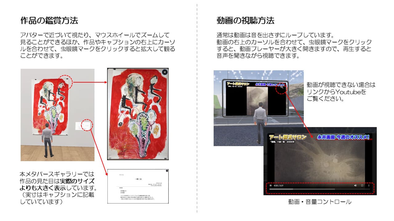 空間内での作品の鑑賞などを行うすべての者(以下「利用者」といいます)は、本メタバース空間(以下「本サイト」といいます)の利用に先立ち、本事項の全文をお読み頂いた上で、内容に同意頂く必要があります。利用者はメタバース空間にアクセスした段階で本事項に同意されたたものとします。